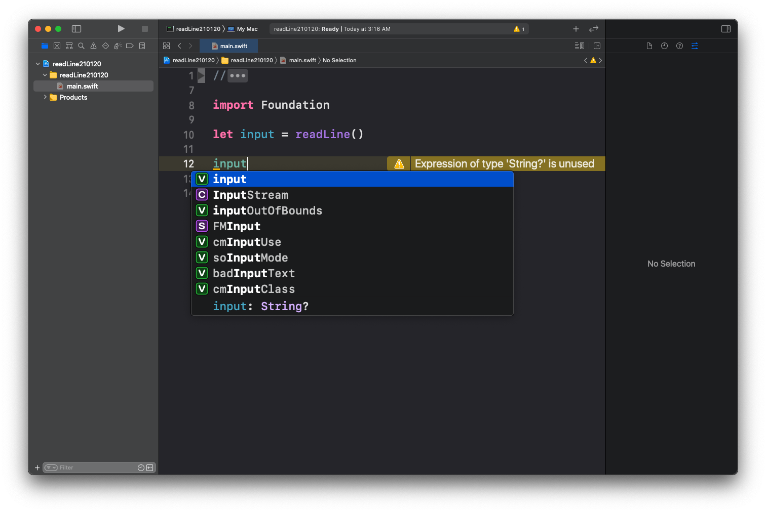 그런데 어떻게 입력을 받지 난감했습니다..ㅠㅠ project에서 textField로 입력받아도 되지만 매번 하기에는 너무 귀찮잖아요??