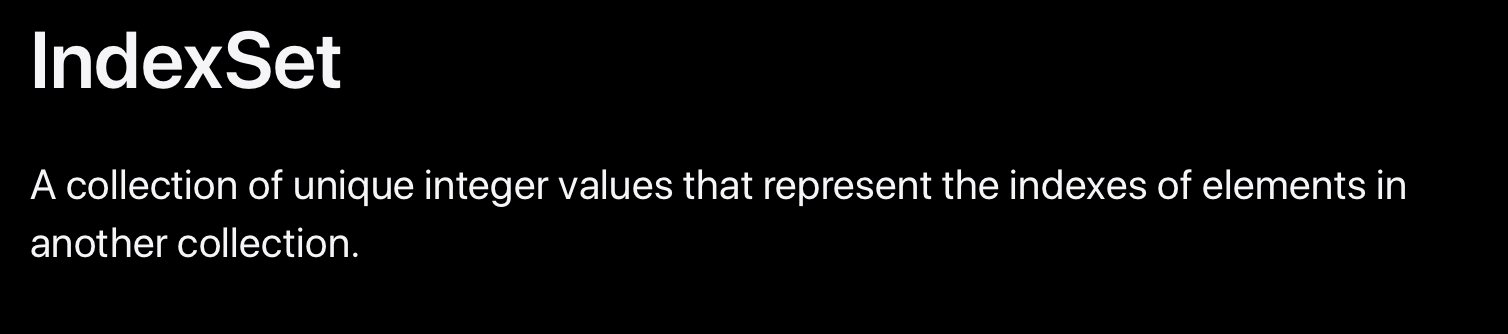 reloadSection(_:) 메서드에서 파라미터로 IndexSet을 받길래 뭐지 하고 공부했다.