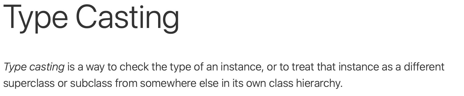애플 문서에서 설명하는 type casting 여기서 설명하는 첫번째 방법인 타입 체크는 다음에 공부해보도록 해요.