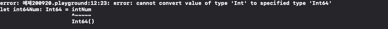 Int64와 Int도 호환되지 않습니다. 코드에서 확인할 수 있듯이 다른 Type입니다.