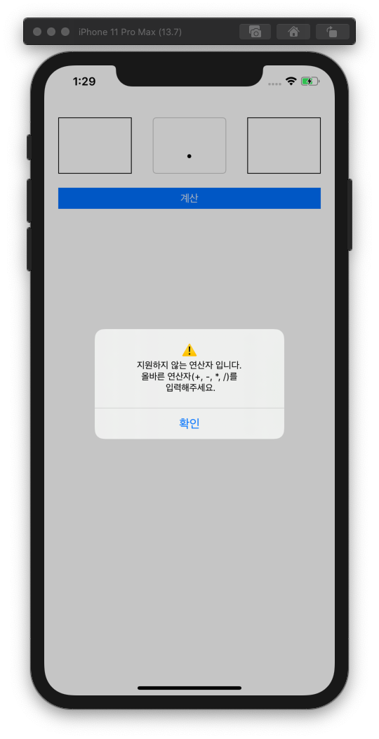 guard let rightStr = rightField.text, let rightNum = Double(rightStr) else { //경고창 rightField.becomeFirstResponder() presentAlert(title: "⚠️", message: "오른쪽 칸에 숫자를 입력해주세요.") return }정상적으로 작동됐다. 전에 공부한 내용인데 까먹었다니ㅠㅠ 반성하자. 1