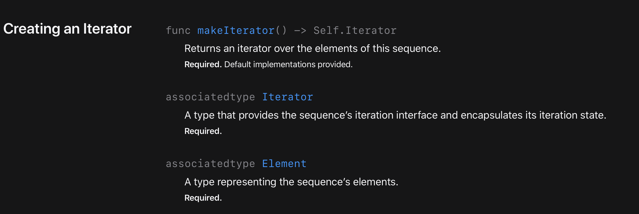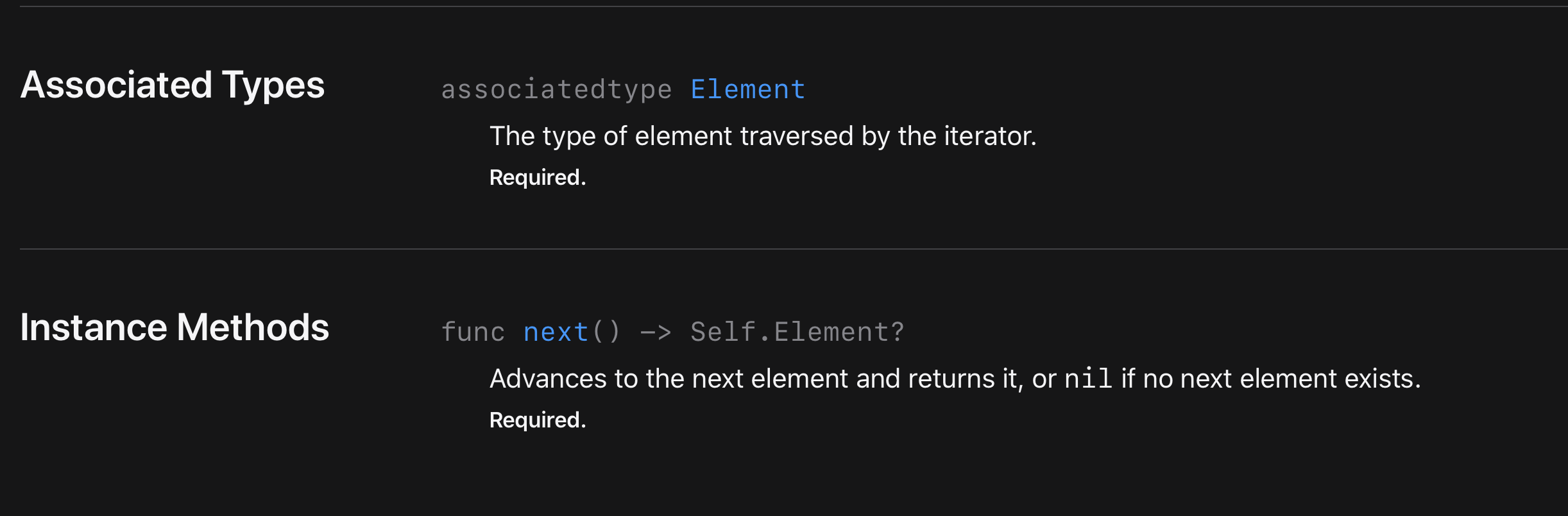 그럼 IteratorProtocol의 required를 보도록 하겠습니다.