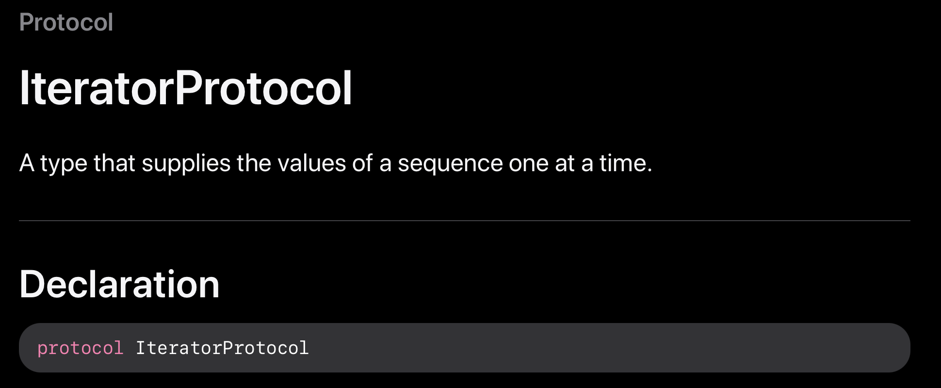 IteratorProtocol은 Sequence의 element를 하나씩 제공해주는 타입입니다.