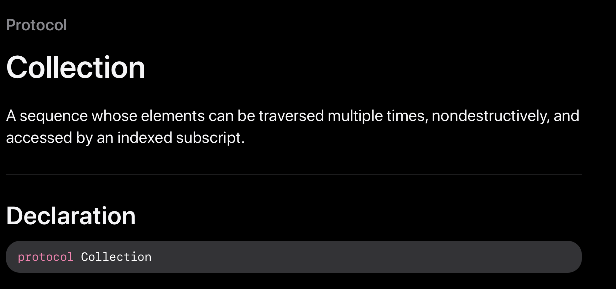 Sequence와 Collection은 프로토콜입니다. (프로토콜에 대해서는 이후에 자세히 다루겠습니다.)