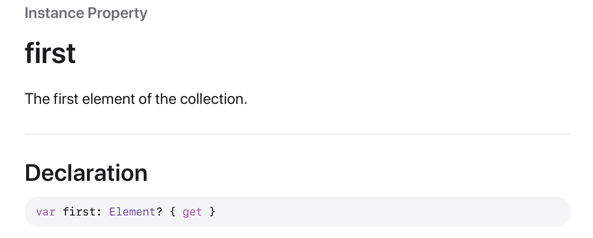 first, last 프로퍼티는 collection의 처음, 끝 element를 리턴해줍니다.