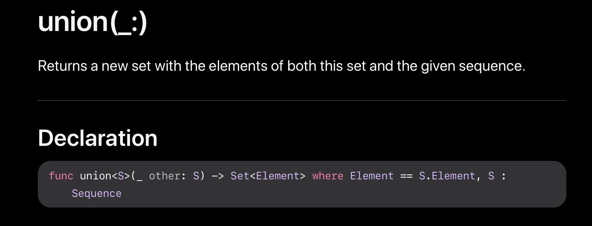 union(_:) 메서드는 두 set의 합집합을 새로운 set으로 리턴해줍니다.
