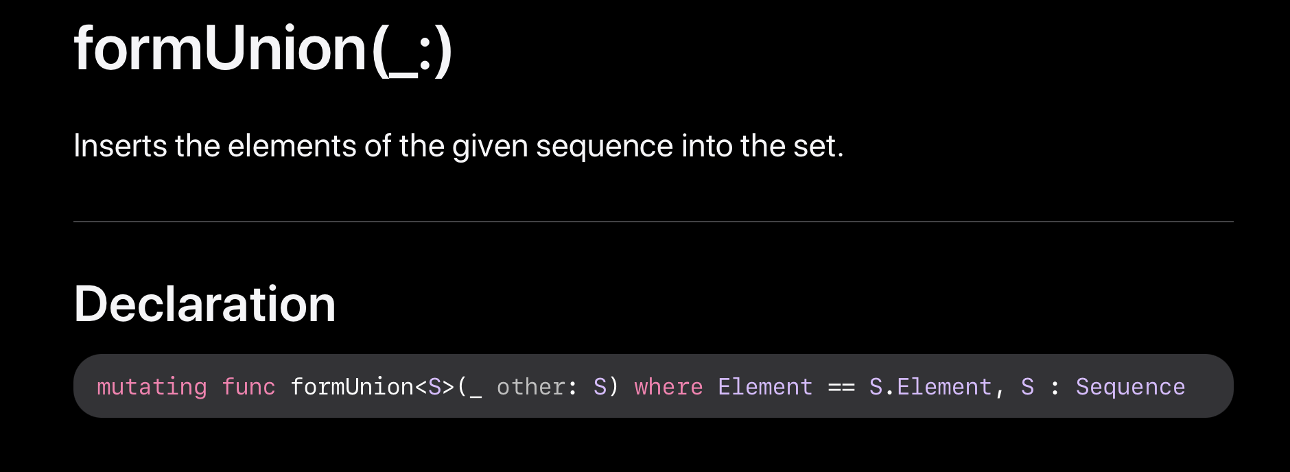 formUnion(_:) 메서드는 두 set의 합집합을 새롭게 리턴해주는 게 아니라 호출한 메서드를 변경시킵니다.