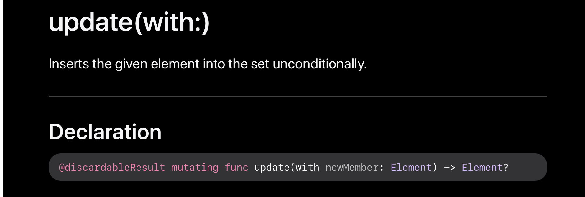 insert(_:)와 마찬가지로 oldMember는 newMember와 같습니다.