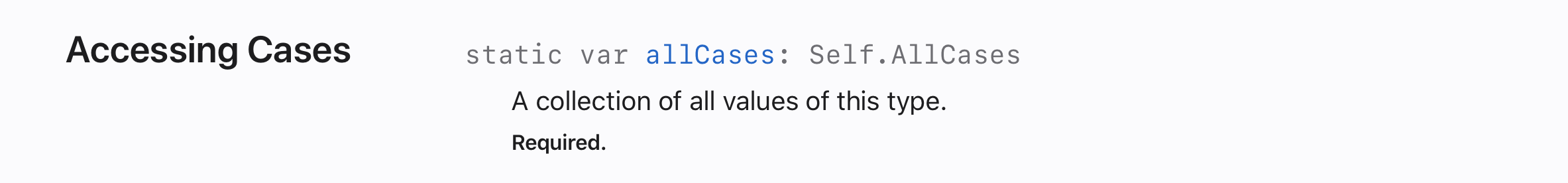 case들만 따로 모아서 직접 array를 만들어도 되지만 Swift에서 제공하는 기능을 통해 간단하게 생성할 수 있습니다.