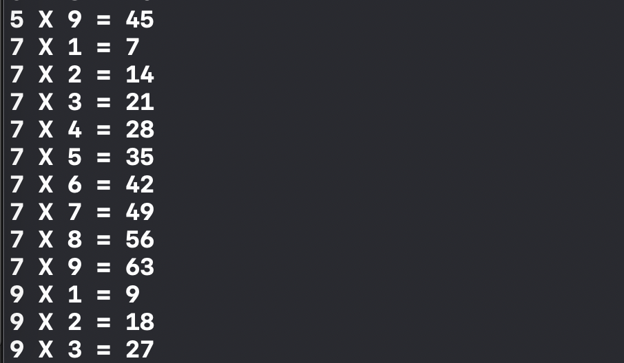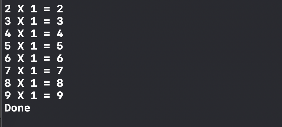 지난 포스팅에서 작성한 구구단을 출력하는 예시에서 사용해 보도록 하겠습니다.