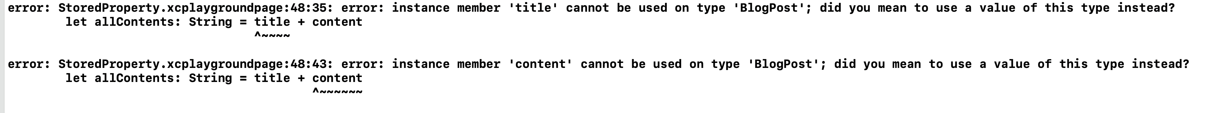 titleAndContent 프로퍼티가 title, content 프로퍼티보다 아래에 선언되어있다고 해서 인스턴스가 초기화될 때 title의 값이 초기화 완료되고 content의 값이 초기화가 되고 초기화된 값들을 이용한다고 생각할 수 있지만 그렇게 작동하지 않습니다.