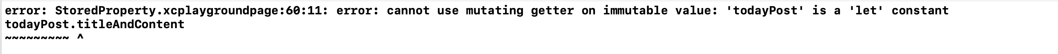 Struct에서 인스턴스를 let으로 선언하면 인스턴스 초기화 이후에 프로퍼티도 초기화할 수 없으니 에러가 발생합니다.