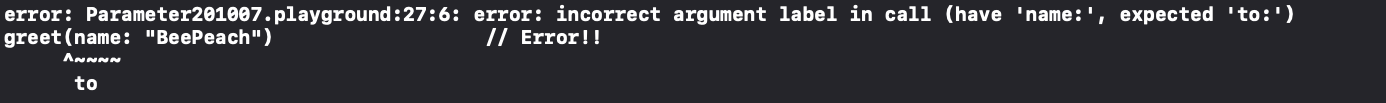 name이라고 적은 부분은 사실 parameterName이고 그 앞에 argumentLabel을 더 작성할 수 있습니다.