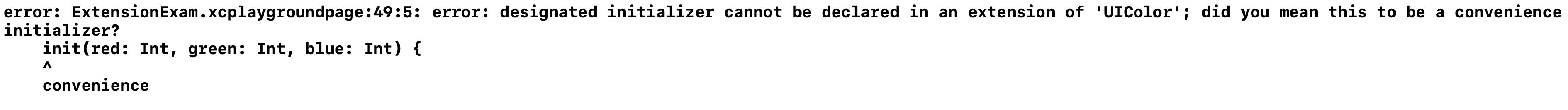 그랬더니 extension에는 designated init을 구현할 수 없다는 에러가 발생합니다.