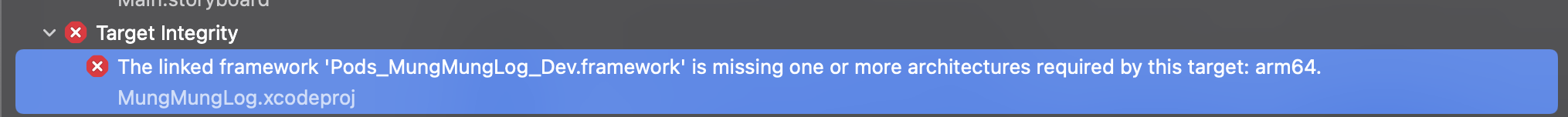 Xcode - The linked framework ~~ is missing one ore more architectures required by this target: arm64Programming/Errors 2021. 12. 26. 11:00