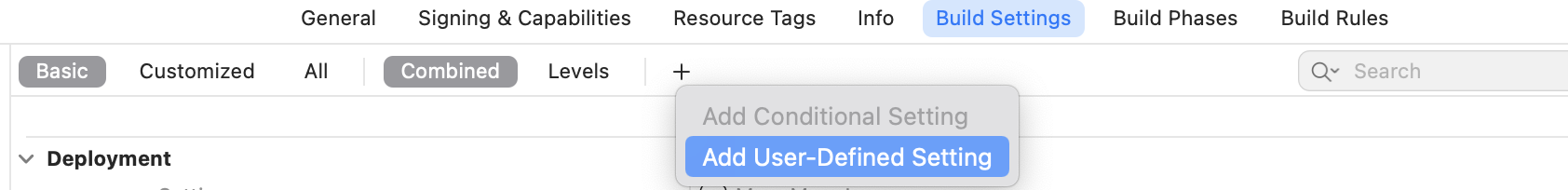 2. +를 클릭한 후 Add User-Defined Setting 클릭