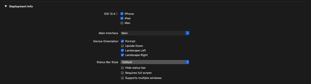 Deployment Info 여기서 iOS 13.0까지는 빌드해도 아무런 문제가 발생하지 않지만 12.4부터 에러가 발생한다!
