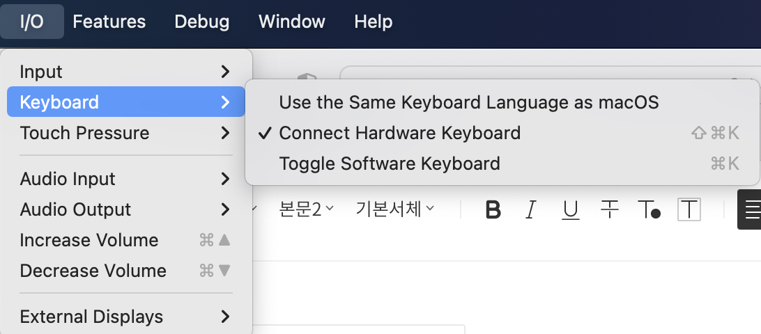 그런데 이렇게 하면 시뮬레이터에서 키보드를 못쓰게 될 텐데...라는 생각이 들었지만 어쨌든 이게 해결방법이라고 하니까 했는데.