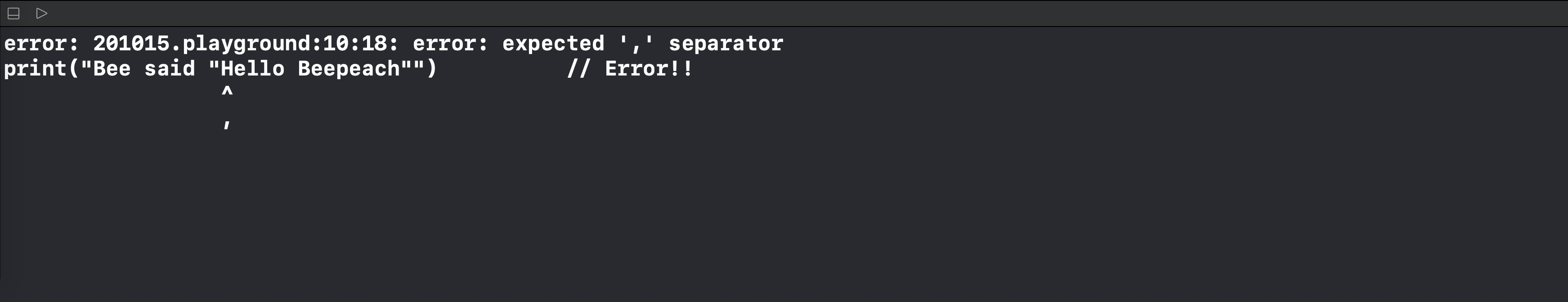 지금 코드에서는 Swift는 String Literal을 "Bee said "까지만 인식을 하게 됩니다.