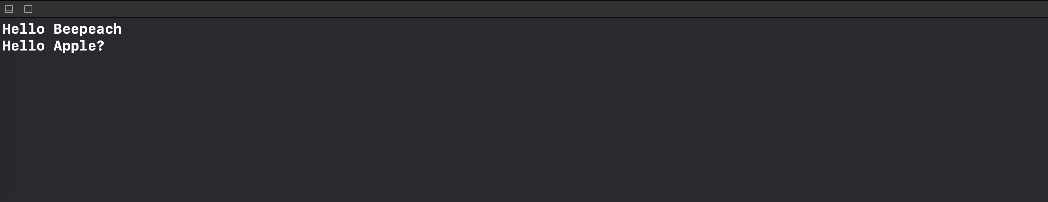 바로 이렇게 "Hello Beepeach"와 같이 작성하면 에러가 발생합니다.
