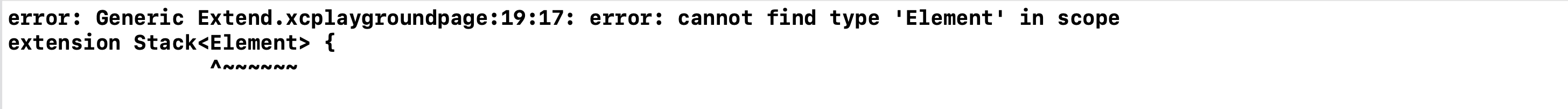 이 구조체를 확장하고 싶어서 extension Stack<Element> {}을 했더니 Element를 찾을 수 없다고 합니다.