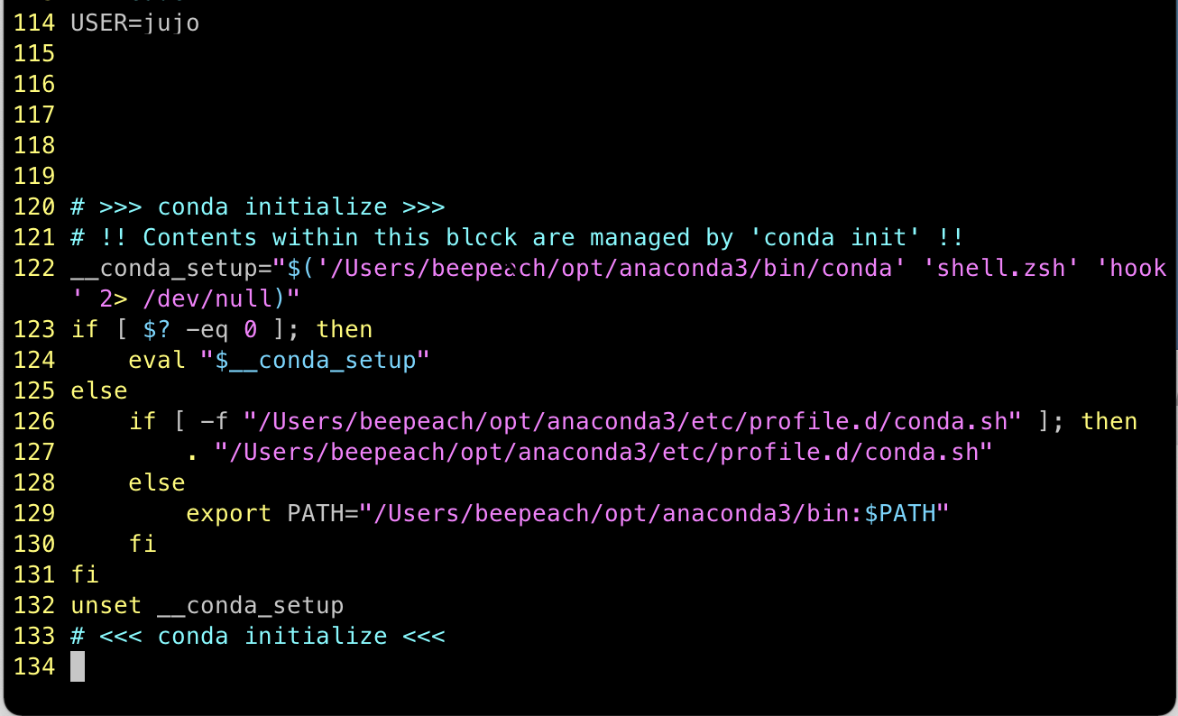 .zshrc 파일에서 예전에 114 Line을 추가한 적이 있었는데...