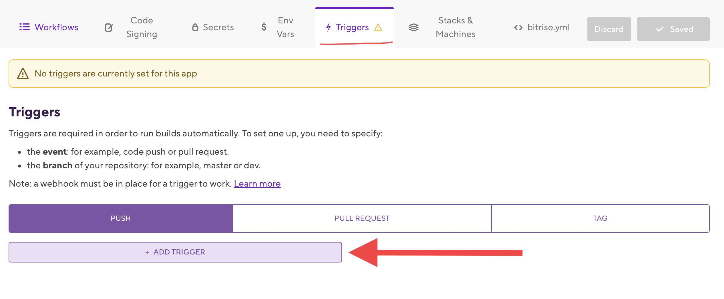 빌드와 테스트가 되도록 trigger를 설정해주어야 합니다.