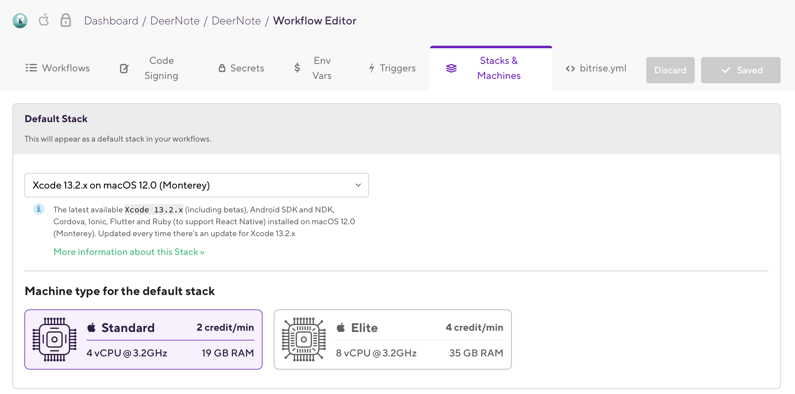 해당 앱 -> Workflow Editor -> Stacks & Machines -> 맞는 버전으로 변경