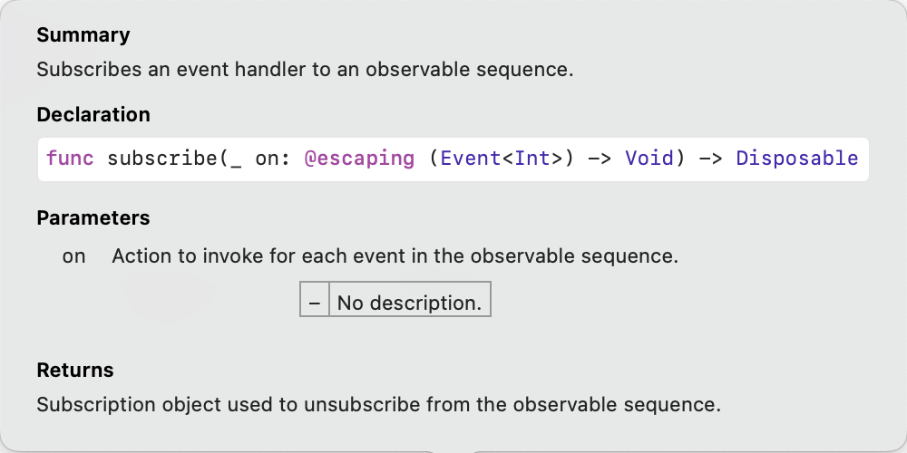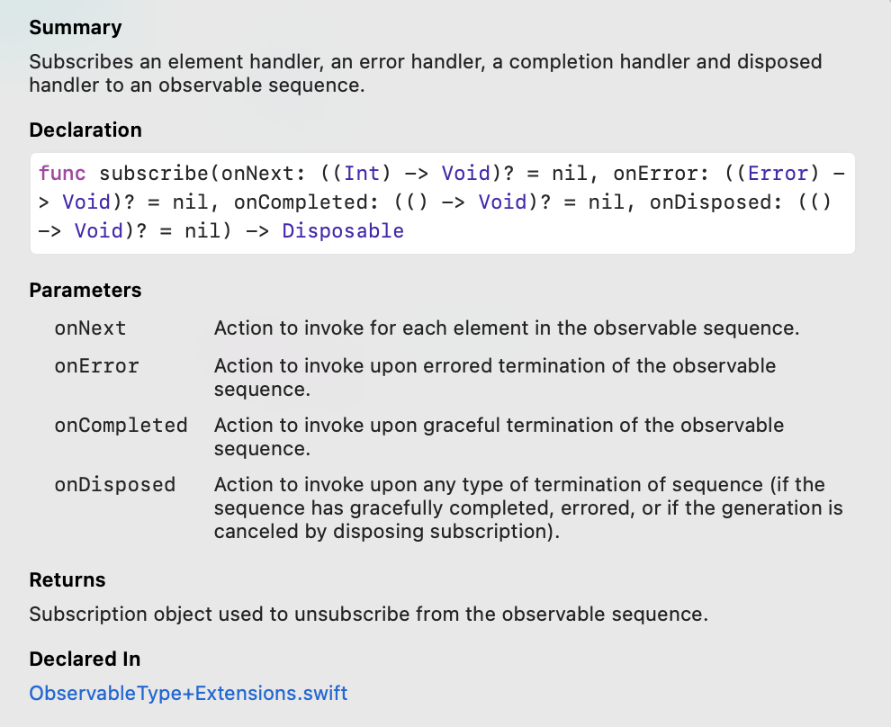 이 메서드는 ObservableType 프로토콜에 정의된 메서드인 것을 이전에 확인했었습니다.