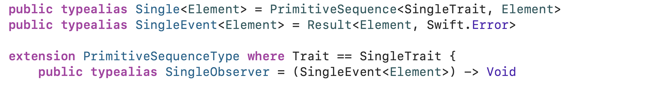SingleObserver는 SingleEvent<Element> -> Void 의 typealias입니다.