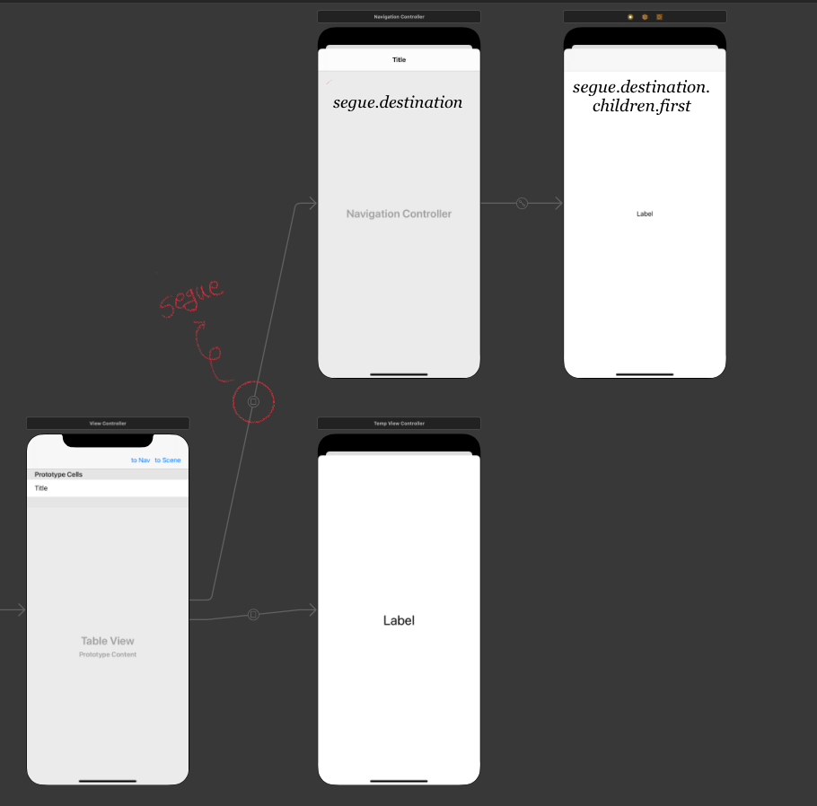 Navigation Controller도 segue로 연결되니 prepare(for:sender:) 메서드에서 처리하면 됐다.