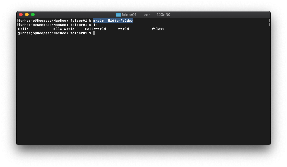 이름 앞에 .을 추가하면 보이지 않는 dir을 생성합니다.