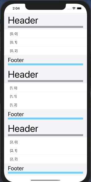 Custom tableViewCell과 tableViewDelegate를 이용하여 section header와 footer를 구현하였다.